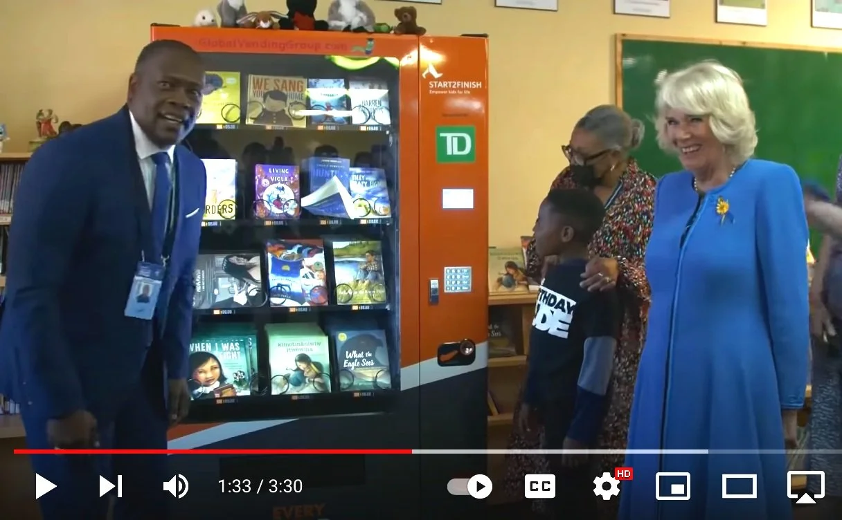 Queen Camilla had the opportunity to try out our book vending machine in Ottawa on her 2022 visit to Canada with King Charles. She was so inspired that she and the then Prince nominated Start2Finish for a Royal Tour donation from the Government of Canada!